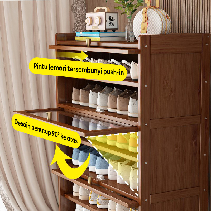 Rak Sepatu Susun Tertutup Lemari Sepatu Aluminium Kaca Minimalis Anti Debu Kayu Gratis Ongkir