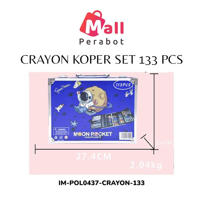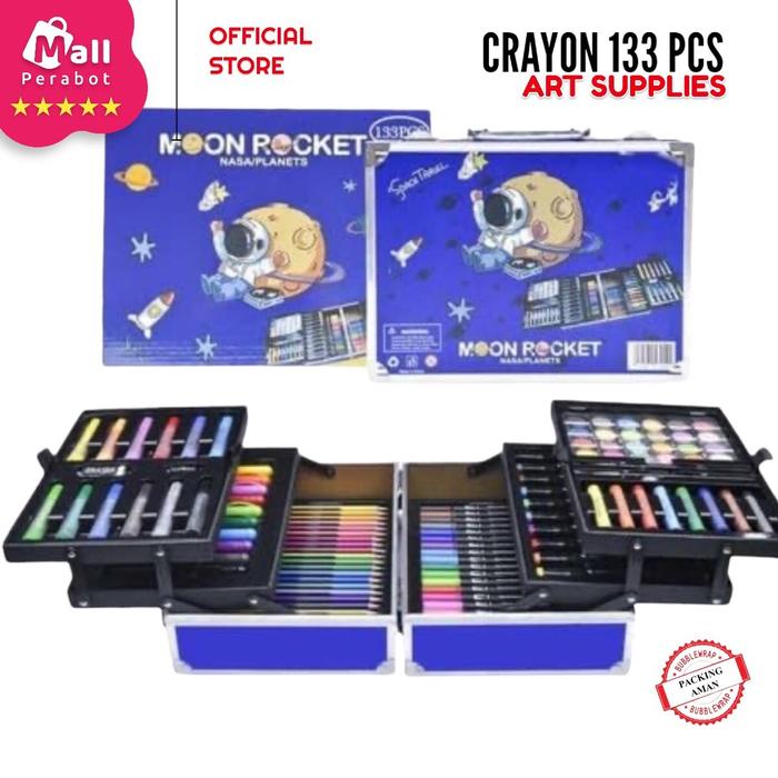 Mall Perabot | Crayon Set 133 & 128 Pcs Koper Aluminium Besi | Box Alat Lukis Anak Koper Set | Krayon Mewarnai Anak | P