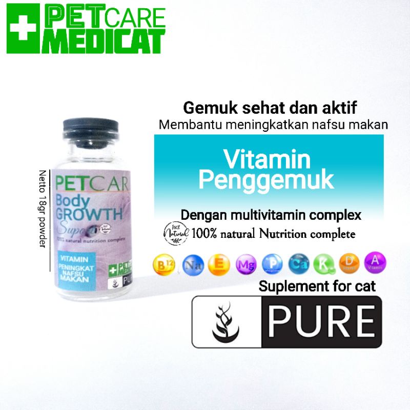 vitamin penggemuk kucing petcare body growth vitamin peningkat nafsu makan kucing vitamin pencernaan vitamin kucing vitamin peningkat nafsu makan
