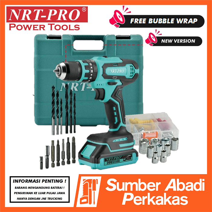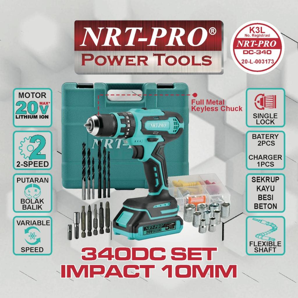 NRT-PRO DC 340 HD Mesin Bor Cordless Drill Set Paket Baterai Batre Tangan Beton Impact Tembok Charger Cas 20V DC340 340H