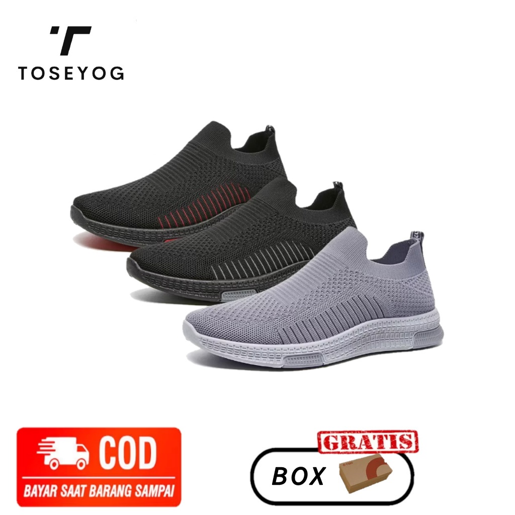 Toseyog 004 Sepatu Kanvas Pria Rajut Tanpa Tali Sepatu Pria Sport men Sneakers