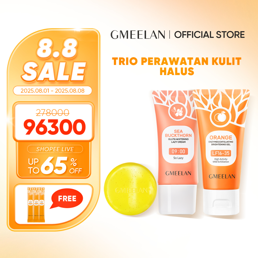 GMEELAN SET Kits 1 Minute Exfoliating Gel 50g + Whitening Lazy Cream 30g + 24k Gold Body Whitening Soap 100g