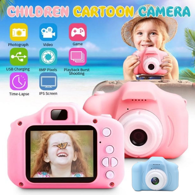 Kamera Digital Anak 8MP HD 2.0 Inch IPS Layar Mini Mainan Kamera Anak Mendukung Rekaman Video Hadiah untuk Ulang Ta