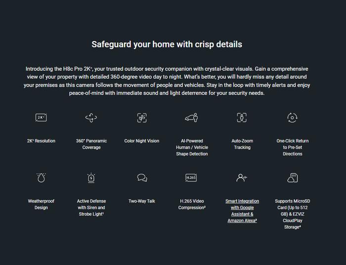 Ezviz H8C 4Mp Pro 2K+ Outdoor Cctv Pan & Tilt Wifi Ip Camera Auto Tracking
