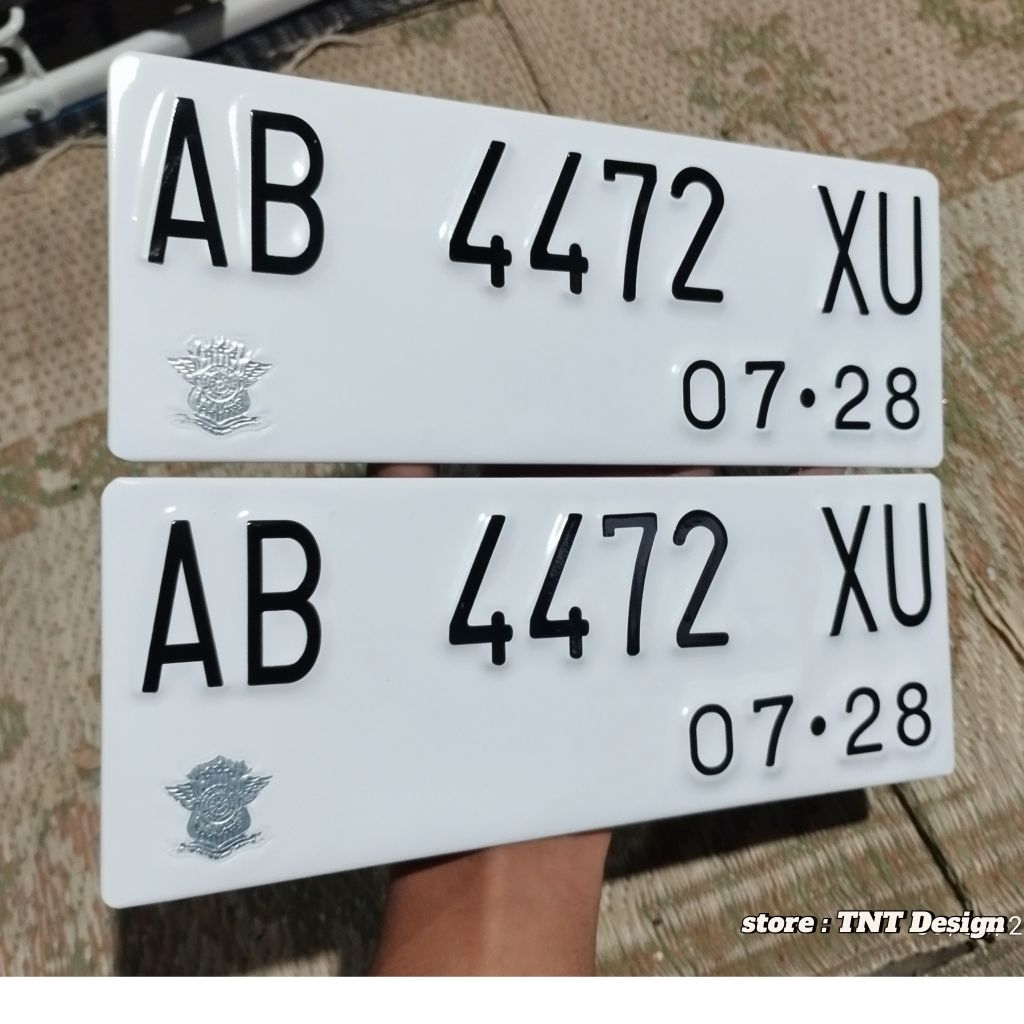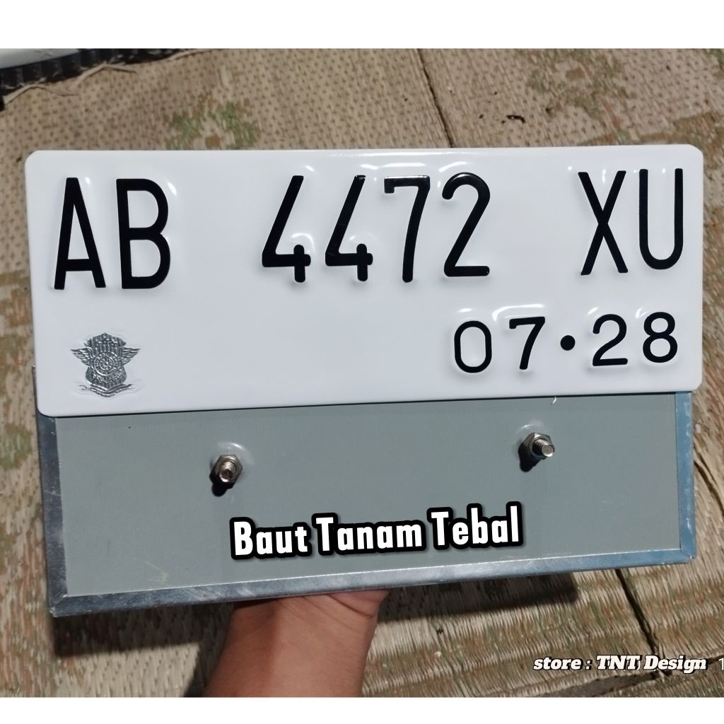 Plat Nomer Custom Putih Baut Tanam, Bahan Tebal Awet (Sepsang)