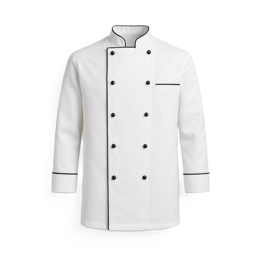 Baunster Baju Chef Baju Koki Lis Samping Body Fit Unisex Bahan Drill Uk Size