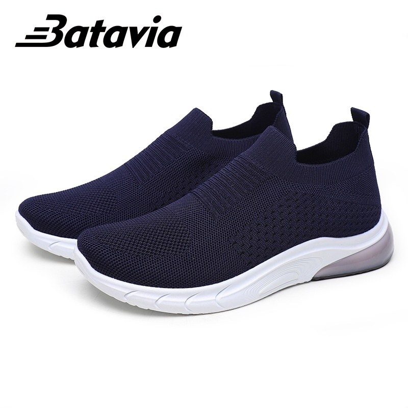 Batavia GROSIR sepatu kanvas pria rajut sepatu pria sepatu tanpa tali hitam sepatu pria B09