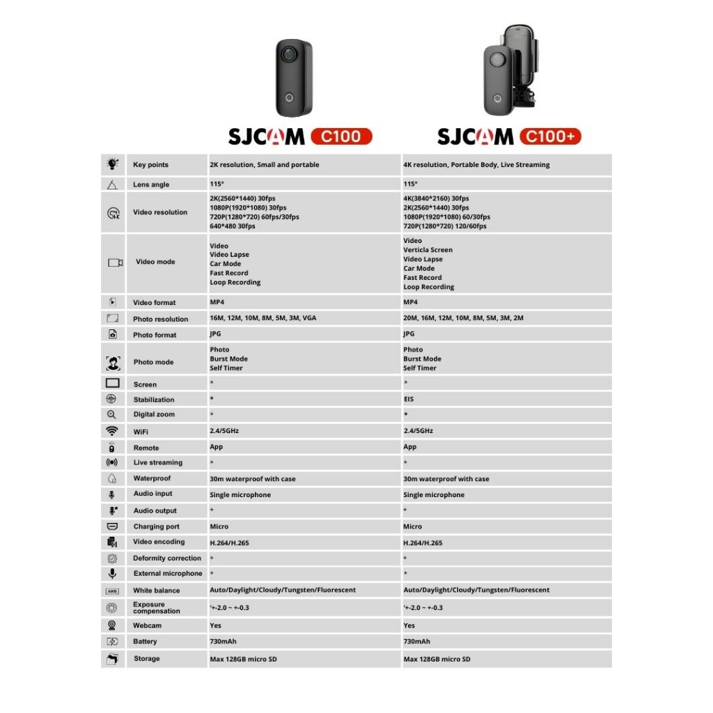 C100 Thumb + 16GB, C100 Thumb + 32GB, C100 Thumb + 64GB, C100 Thumb + 128GB, C100 WHITE, SJCAM C100 Thumb, C100 Thumb + Tongsis