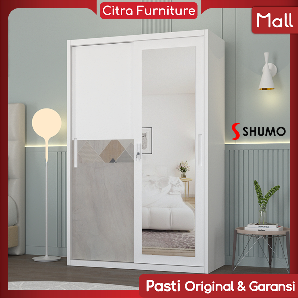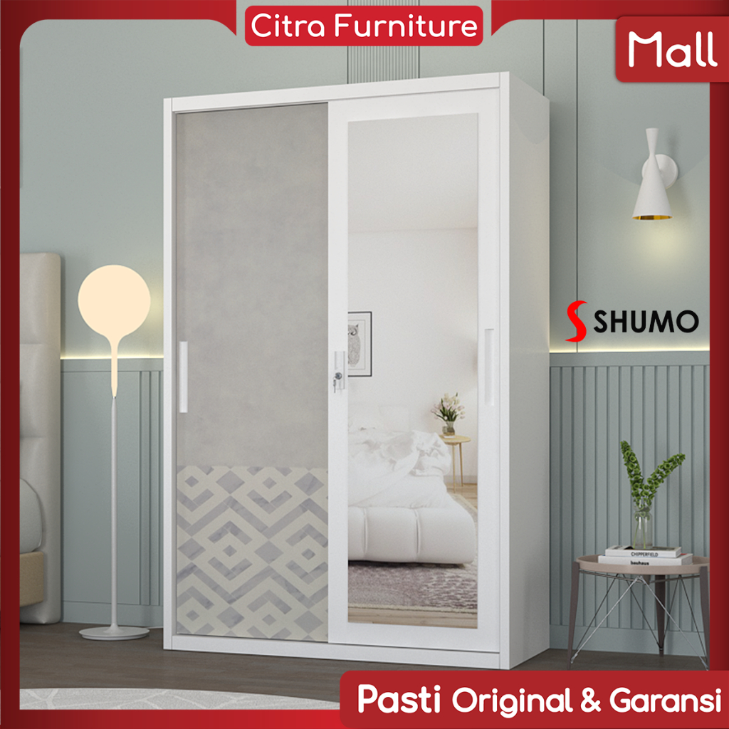 Citra Furniture SHUMO ® Lemari Pakaian Besi 2 Pintu Sliding Jumbo | Lemari Baju Sleding Kaca CTR1