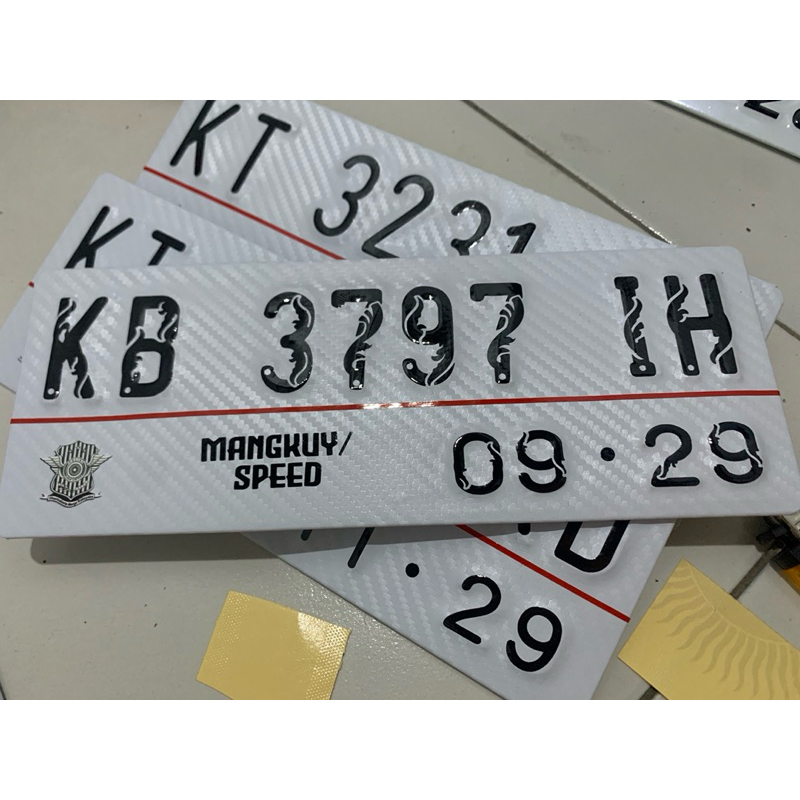 Plat Motor Custom Karbon Lipat Baut Tanam (Hitam / Putih)