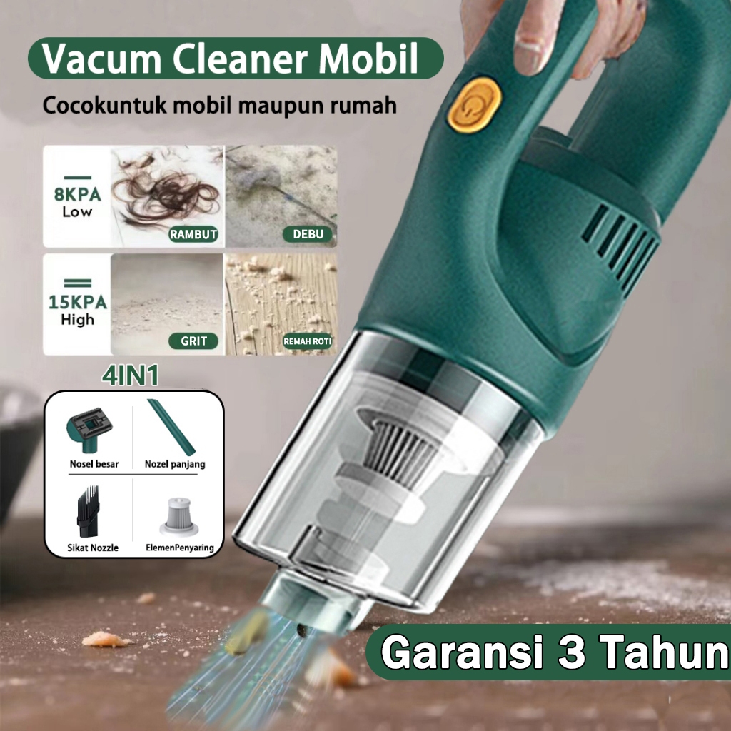4in1 Vakum Tanpa Kabel Isi Ulang Bergaransi 3 Tahun 12000Pa Penyedot Debu Rumah Tangga Penyedot Debu Genggam, Kuat,