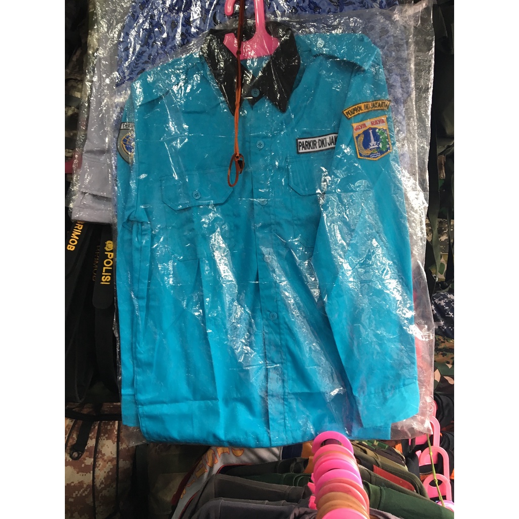 Kemeja Parkir Drill Biru Lengan Panjang Pendek