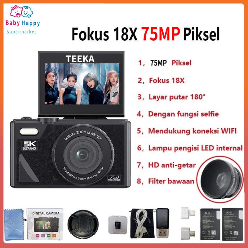 100 PERSEN Ori Teeka 64gb 18X 75Mp Kamera Digital 4K Vlogging Dengan Dukungan Selfie Koneksi Wifi untuk Hadiah Pemula