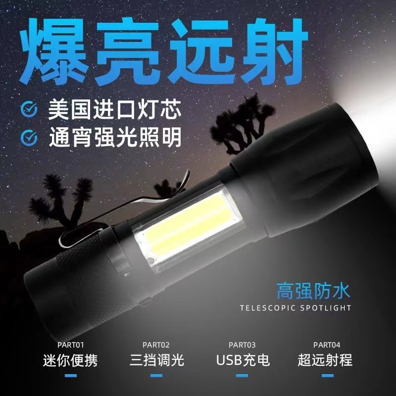 SENTER MINI XPE COB ZOOM SUPER TERANG SWAT POLICE RECHARGEABLE
