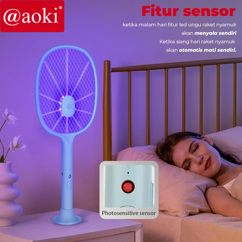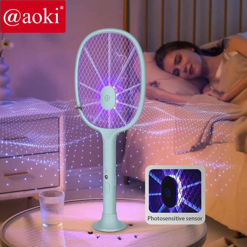 AOKI Raket nyamuk sensor pembasmi nyamuk dengan Photosensitive induction electric mosquito swatter