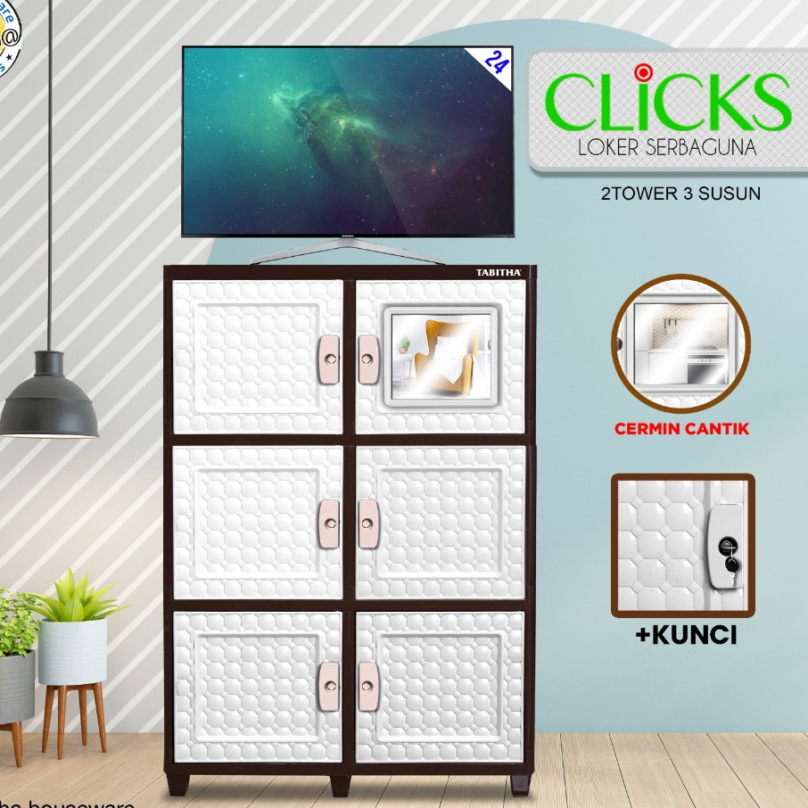 Lemari Plastik Lemari Pakaian Plastik Susun Kaca Kunci