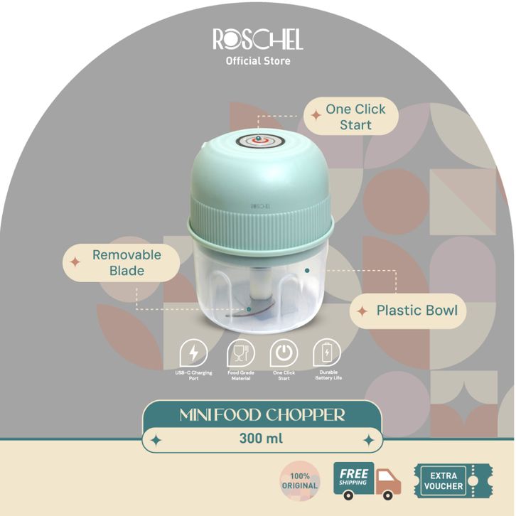 Chopper Kaca 300ml Portable One Touch With Safety Lock Food Grade Food Processor Mpasi Blender Penggiling Daging Sayur B