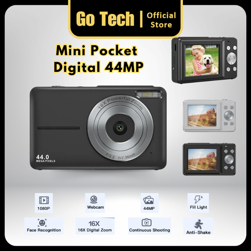 Go Tech - Kamera digital 44 megapiksel asli / Kamera Digital Pocket 44 Mp Full Set Original + SD CARD 32 GB Camera