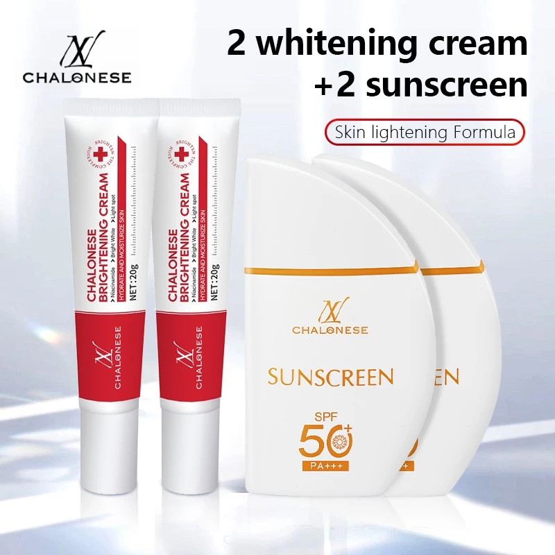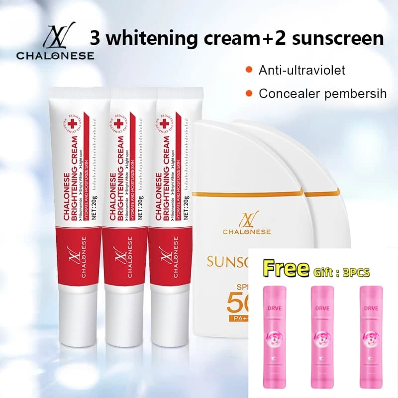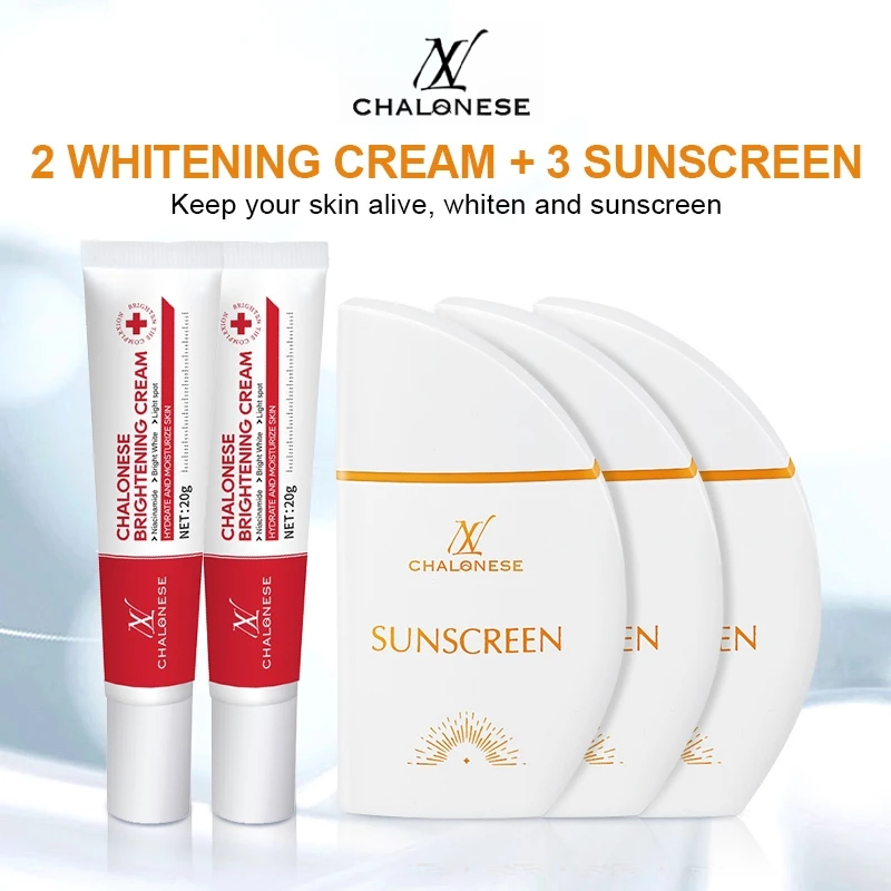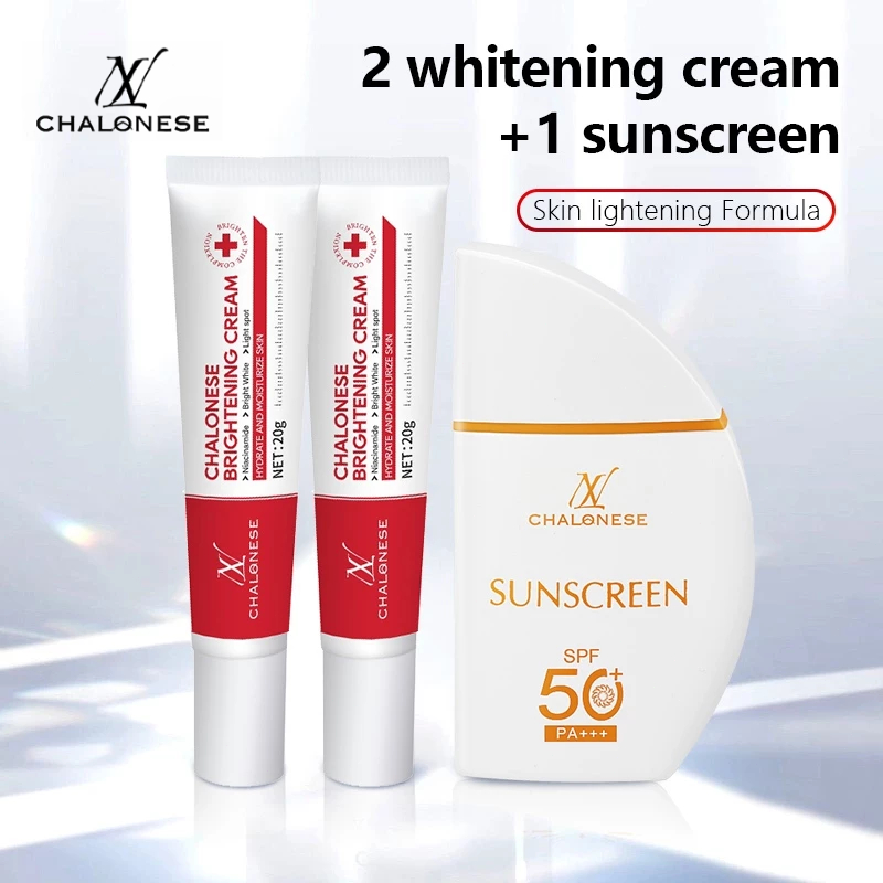 CHALONESE Paket Whitening Freckle Set BPOM ( Brightening Cream + Sunscreen SPF 50 PA+++) Whitening And Freckle Removal Daily Skincare Anti-UV Sun Protection