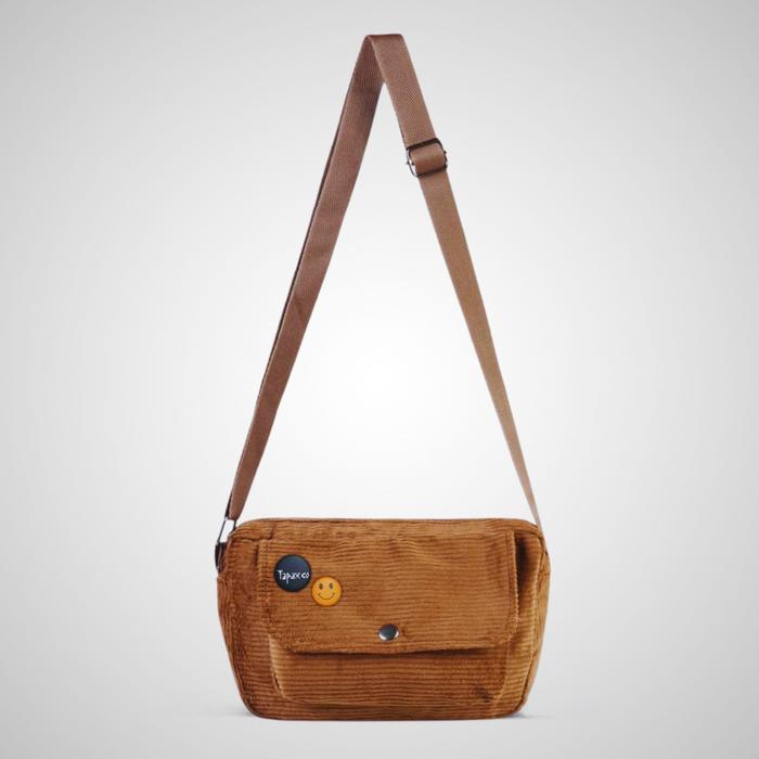 Tapaxco Tas Selempang Nova - Mini Slingbag Uniseks Tas Pria Wanita Corduroy Polos Tapax I Free 2 Bross - Coklat