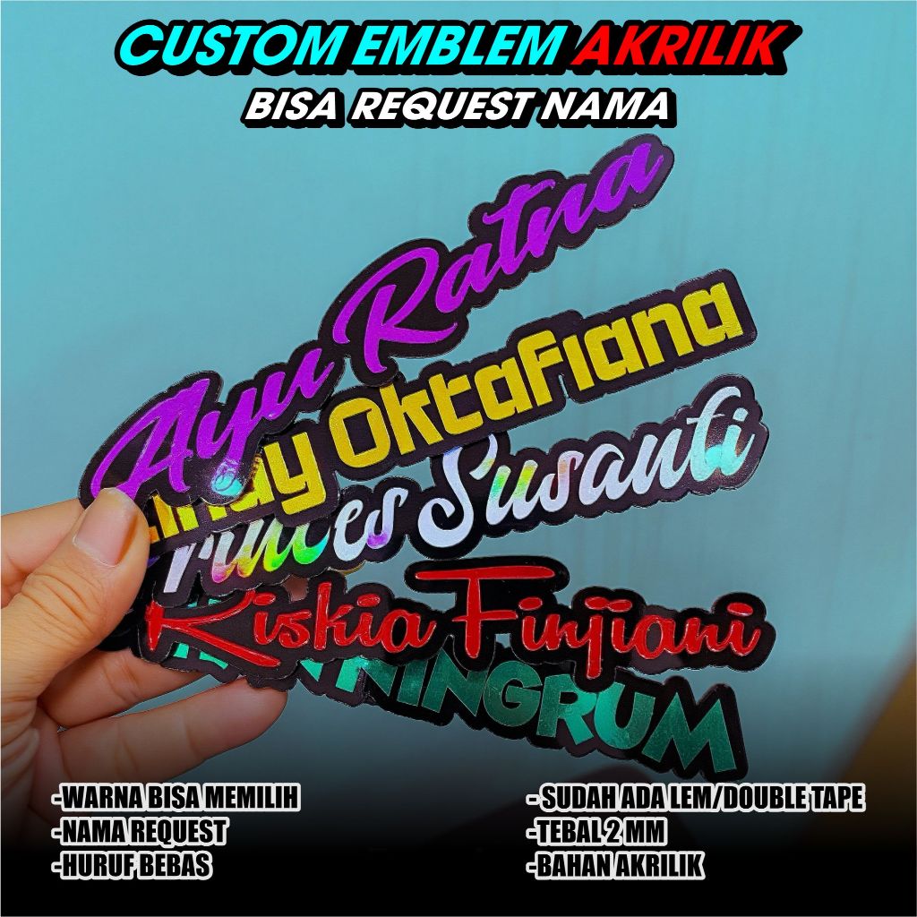Emblem Custom Nama Satuan Emblem Akrilik 2mm + Double Tap Motor / Mobil Universal / Emblem Nama