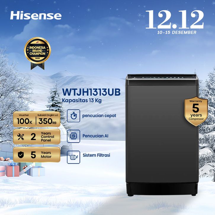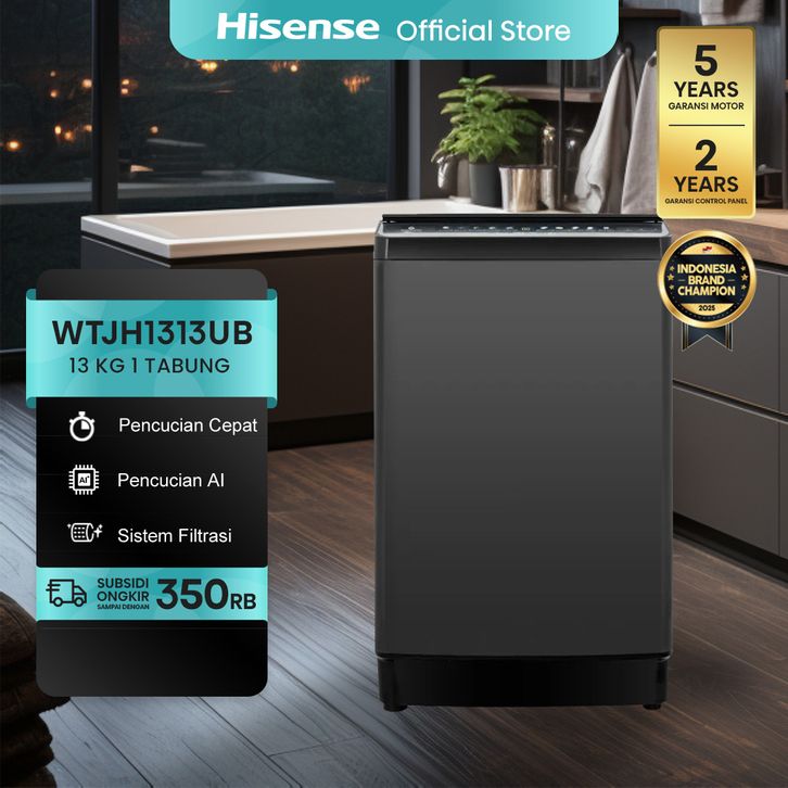 Hisense Washing Machine Mesin Cuci Top Loading Kapasitas 13 kg WTJH1313UB - Turbo Wash - Water Fall - Child Lock