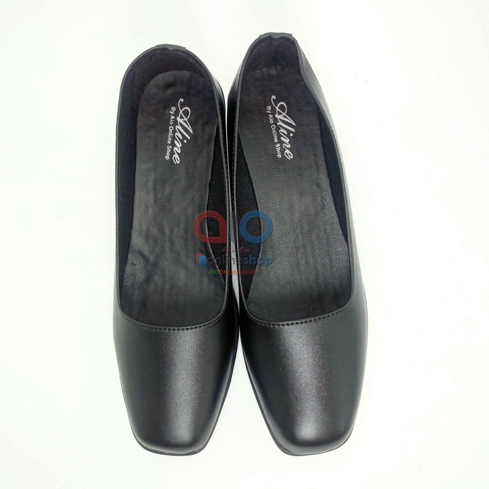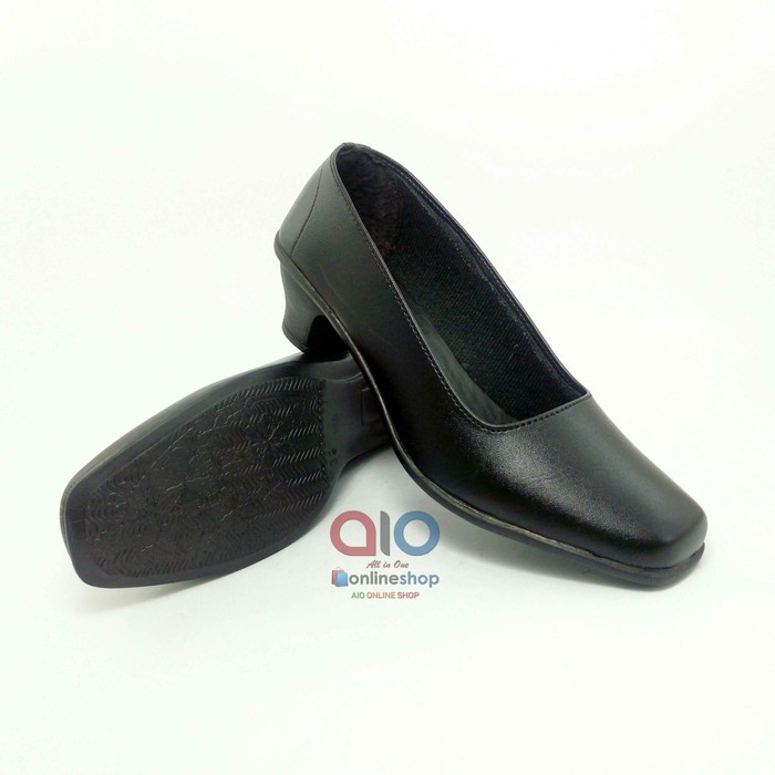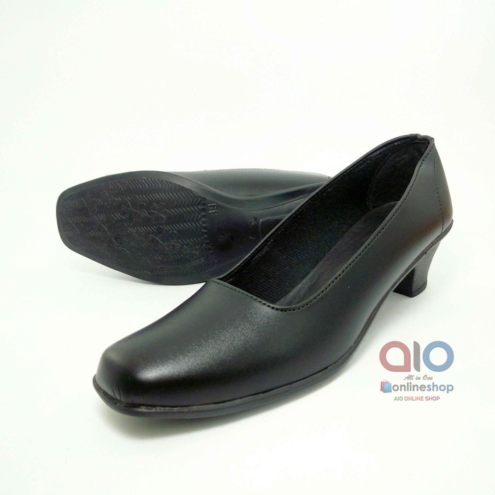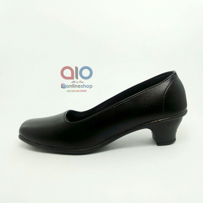 Sepatu Pantofel Wanita Hak 5 Cm Heels Hitam Polos Formal Guru Sekolah Kantor Kerja AW11