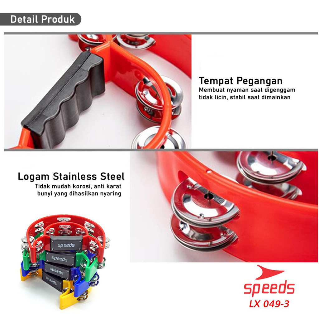 SPEEDS Tambourine Instrument Alat Musik Tamborin Alat Musik Kecrek Kecrekan 049-3