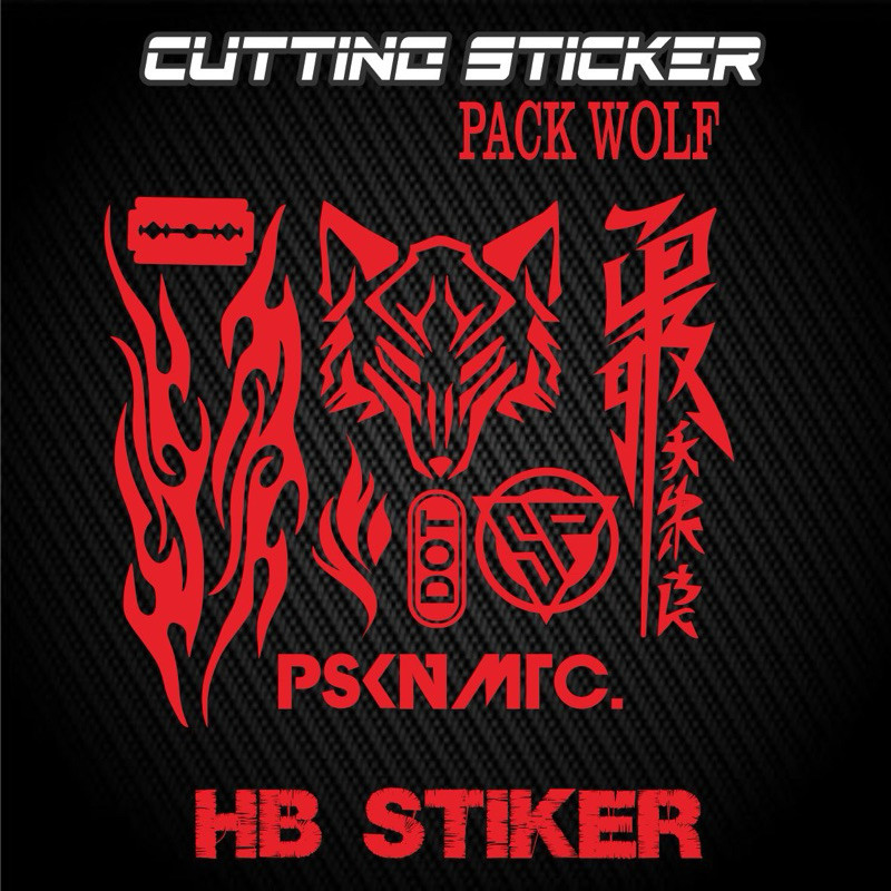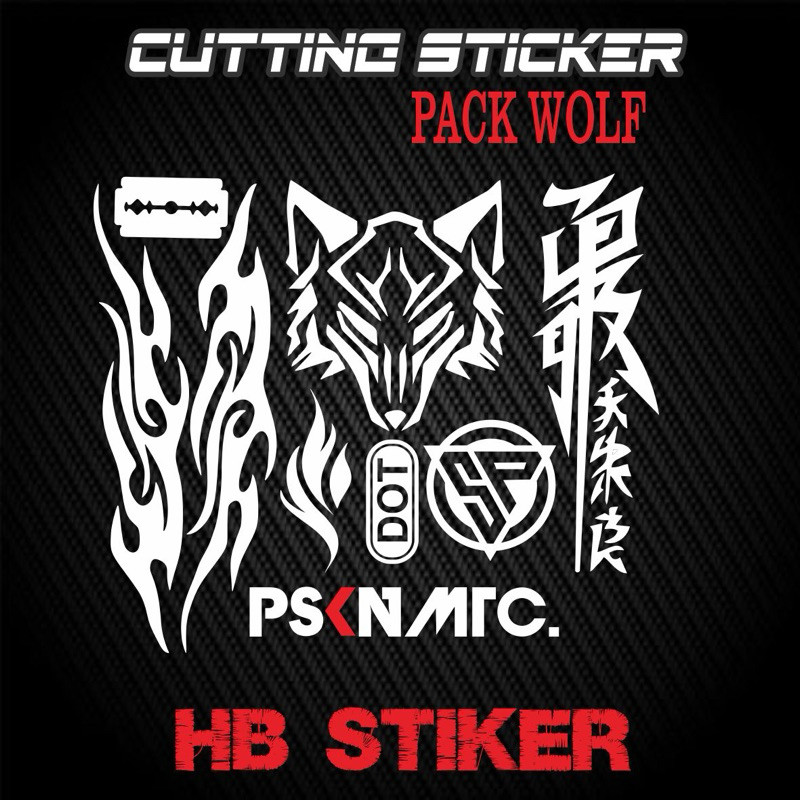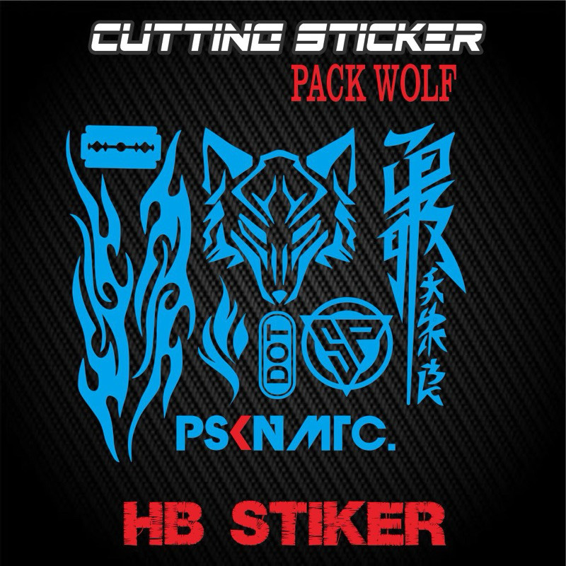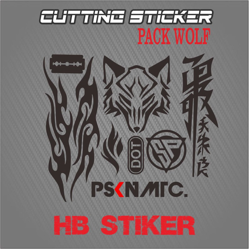 Sticker cutting set pack wolf api logo sp dot kanji katakana pskn matic Stiker cuting helm motor kekinian