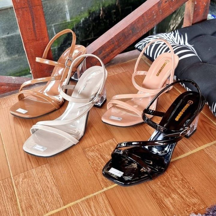LOVE IT - GENDHIS High Heels Wanita Sepatu Hak Kaca Bening Transparan Bahan Sintetis Glossy Glowwy