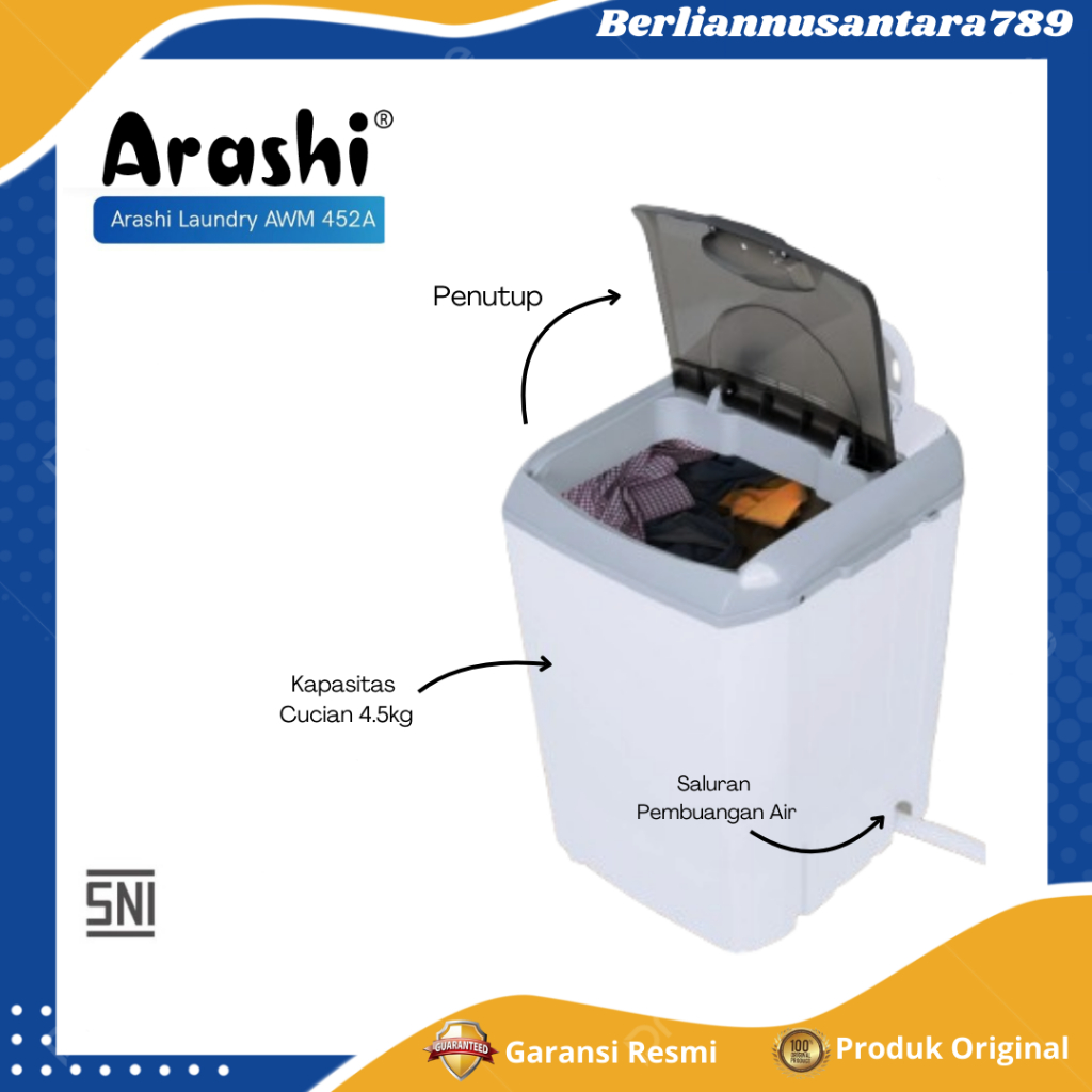 Mesin Cuci Portable 4.5 Kg AWM 452A - Mesin Cuci 1Tabung - Garansi Resmi