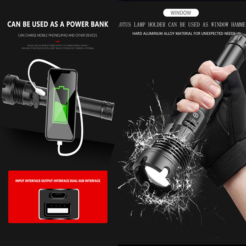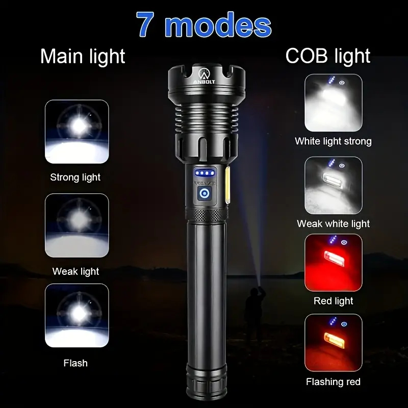 Anbolt 10000 Lumens Senter Super Terang Senter Tahan Air Laser Jarak Jauh 10 KM Waterproof Flashlight Outdoor Senter Led Super Terang