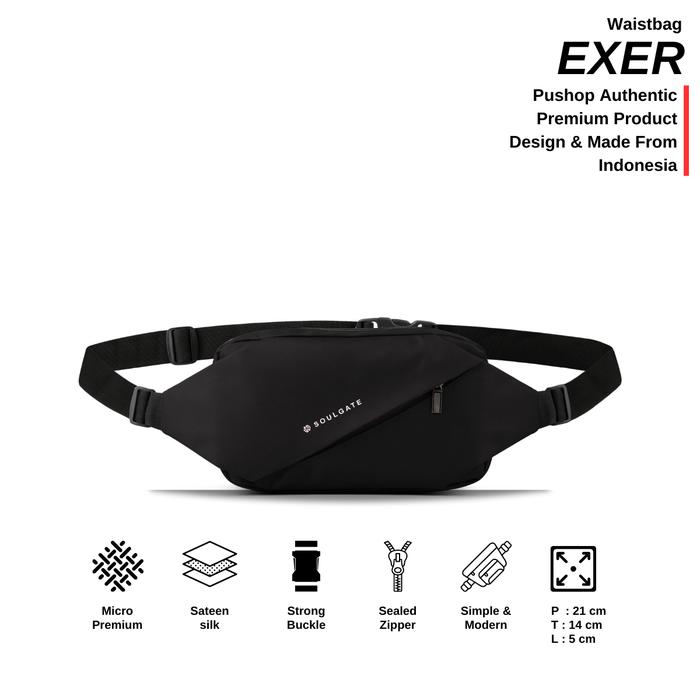 Pushop Tas Selempang Pria Wanita Exer - Waistbag Uniseks Tas Pinggang Kasual Bisa Bolak Balik Waterproof - Hitam