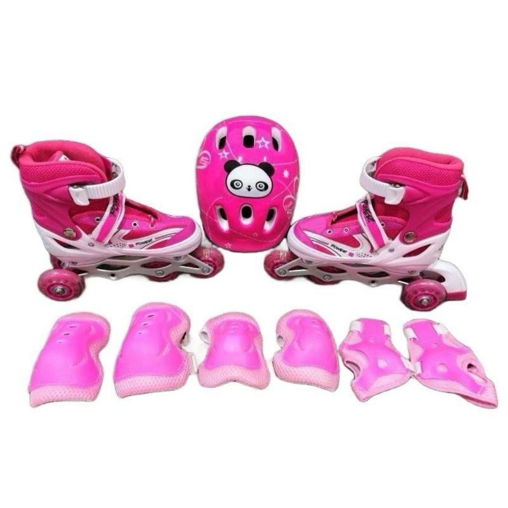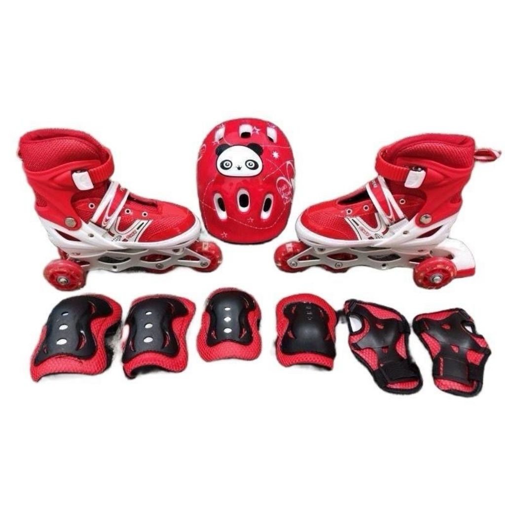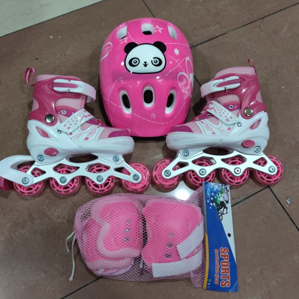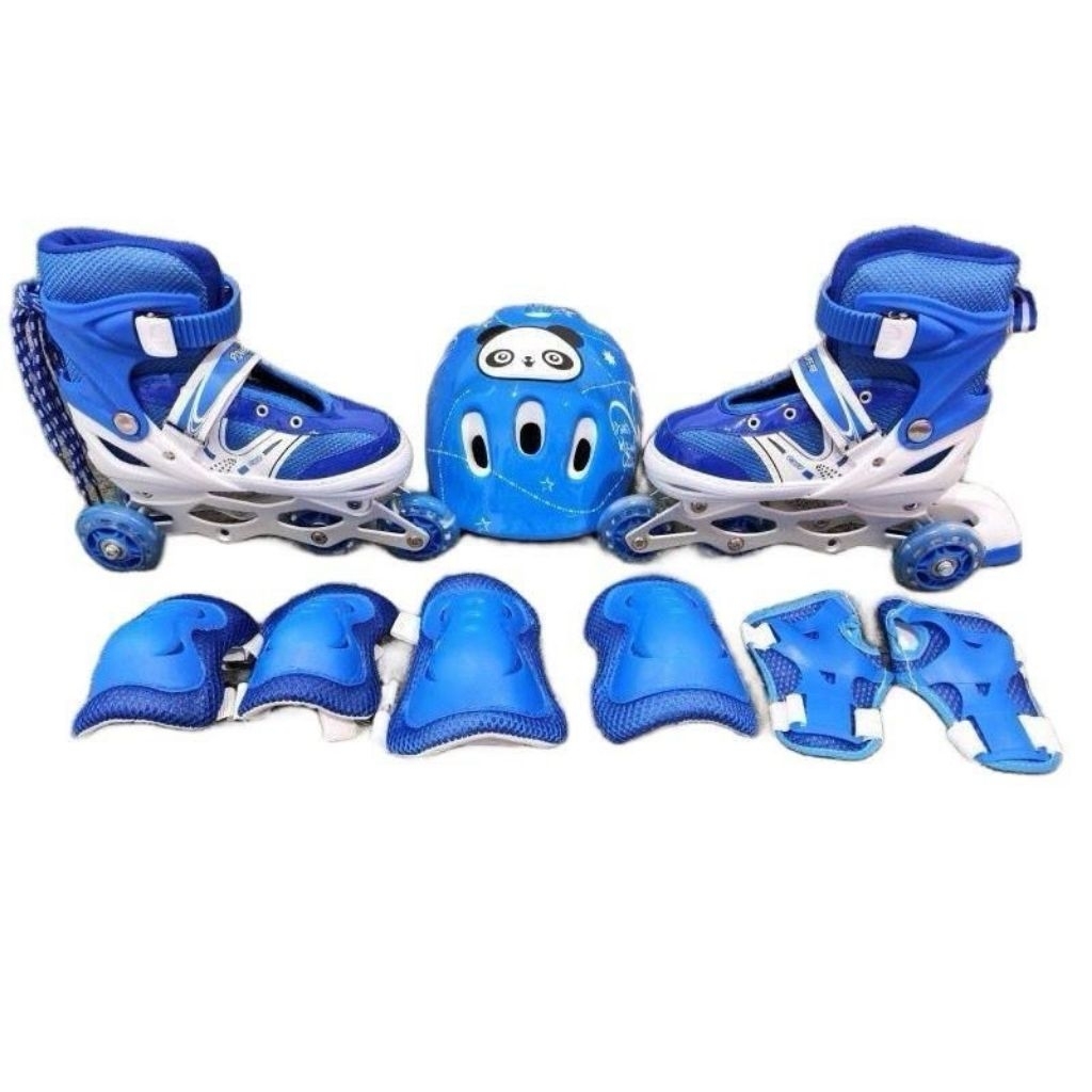 Sepatu roda model bajaj dan sejajar lengkap helm dan deker