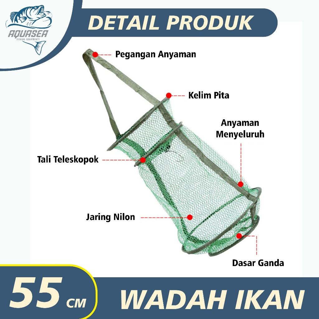 [Star] AQUASEA -- Korang Pancing Ikan Nilon/Koja Tinggi 55cm WaringLobster/ Keramba Mancing Ikan/Wadah Ikan