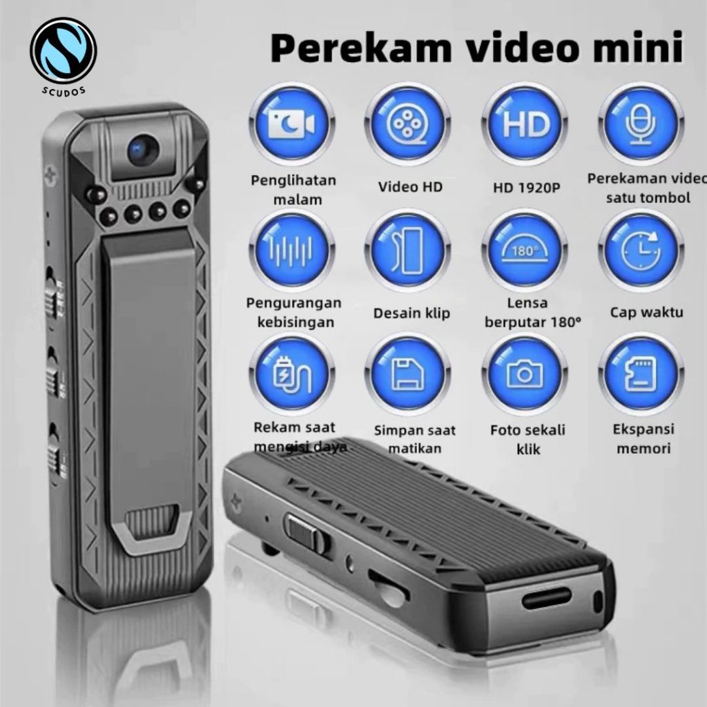 SCUDOS Mini kamera cctv HD 1920P 180° Mini Camcorder Dash Cam Police Body Motorcycle Bike Motion Camera Desain Magn