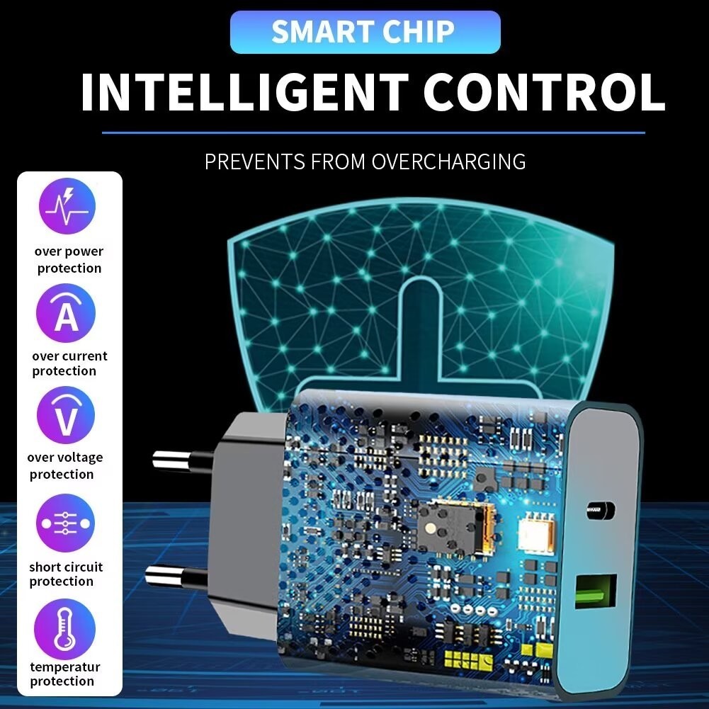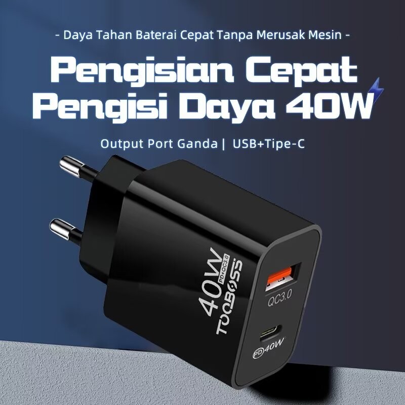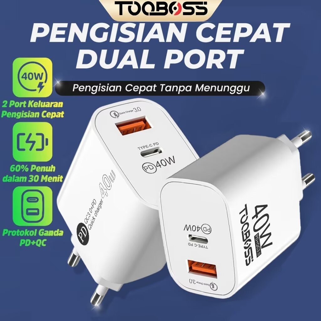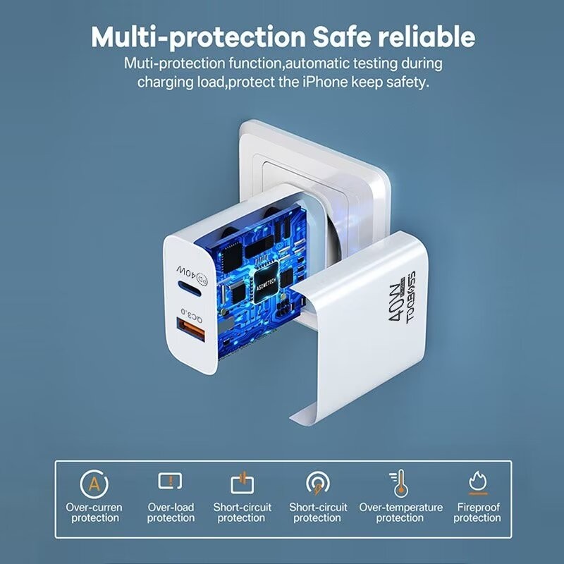 Charger Fast Charging 40W Adapter Wall Type C+3.0 USB Dual Port Travel Charger
