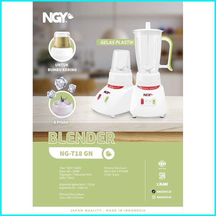 Nagoya Blender National Plastik 2 In 1 Ngy-t18gn 1 Liter - 6 Mata Pisau Stainless