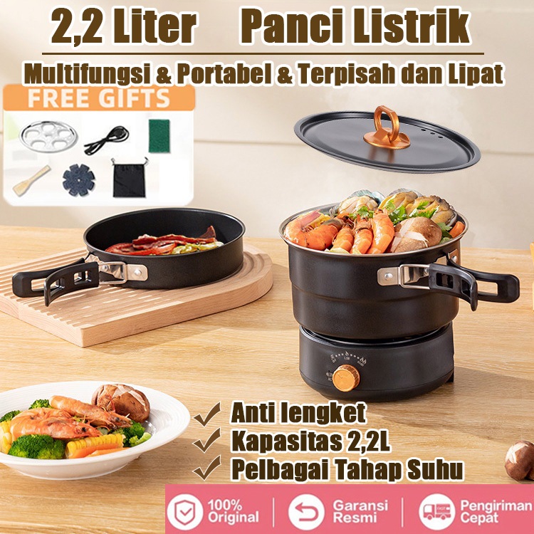 M3m.4sak Cepat- 2,2L 500W Kompor Listrik Lipat Portable Dilengkapi Wajan Panci / Panci Listrik Serbaguna Desain Ter