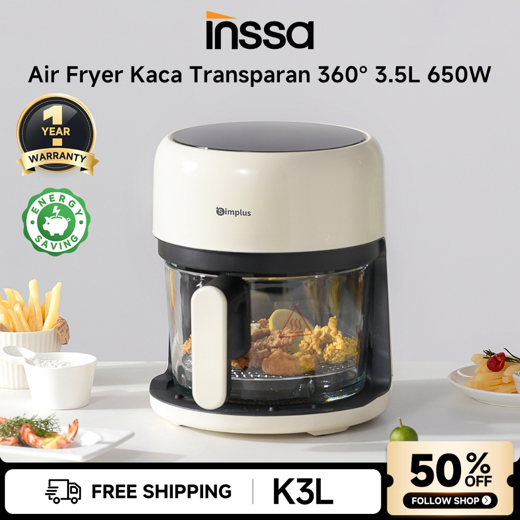 INSSA X Simplus Air Fryer Low Watt 650W 3.5L Digital Touch Screen Panoramic Glass 360 View