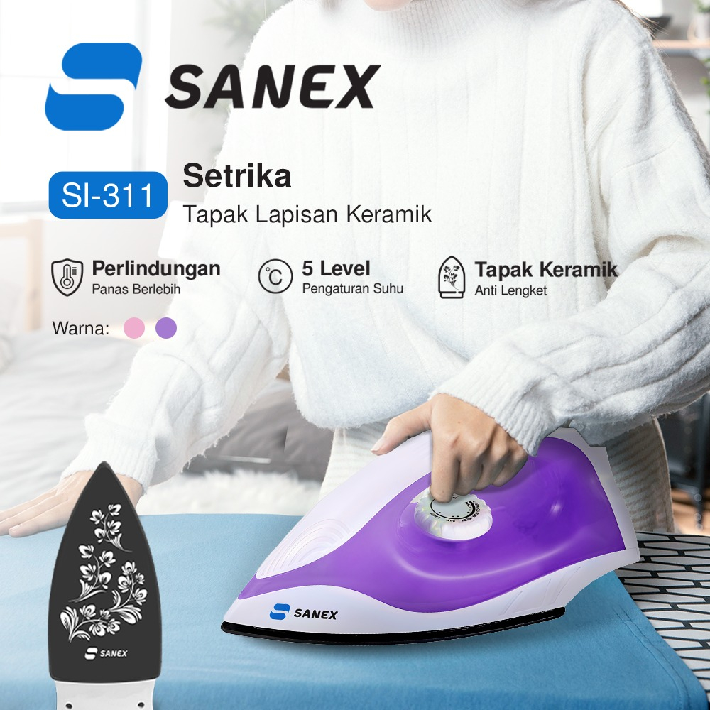 Sanex Setrika Listrik Anti Lengket SI-311 Keramik Ungu/Pink