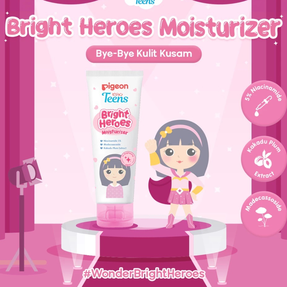 PIGEON TEENS Bright Heroes Series || Paket Skincare Remaja || Skincare Mencerahkan & Melembabkan Wajah