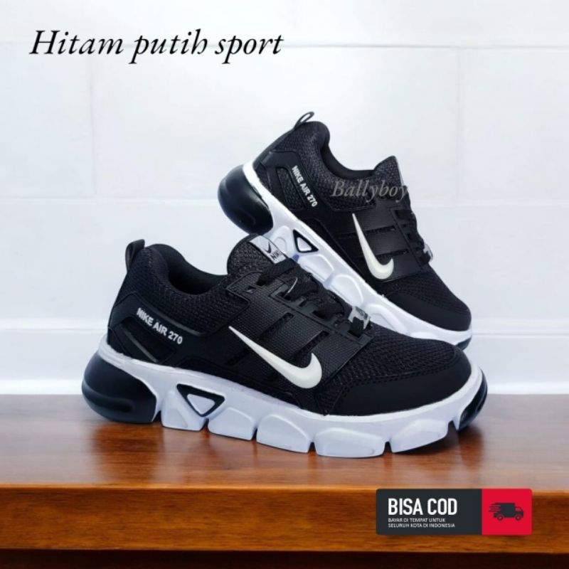 Sepatu Sekolah HItam Putih Pria Wanita Sepatu HItam Polos Full Blak 36/44
