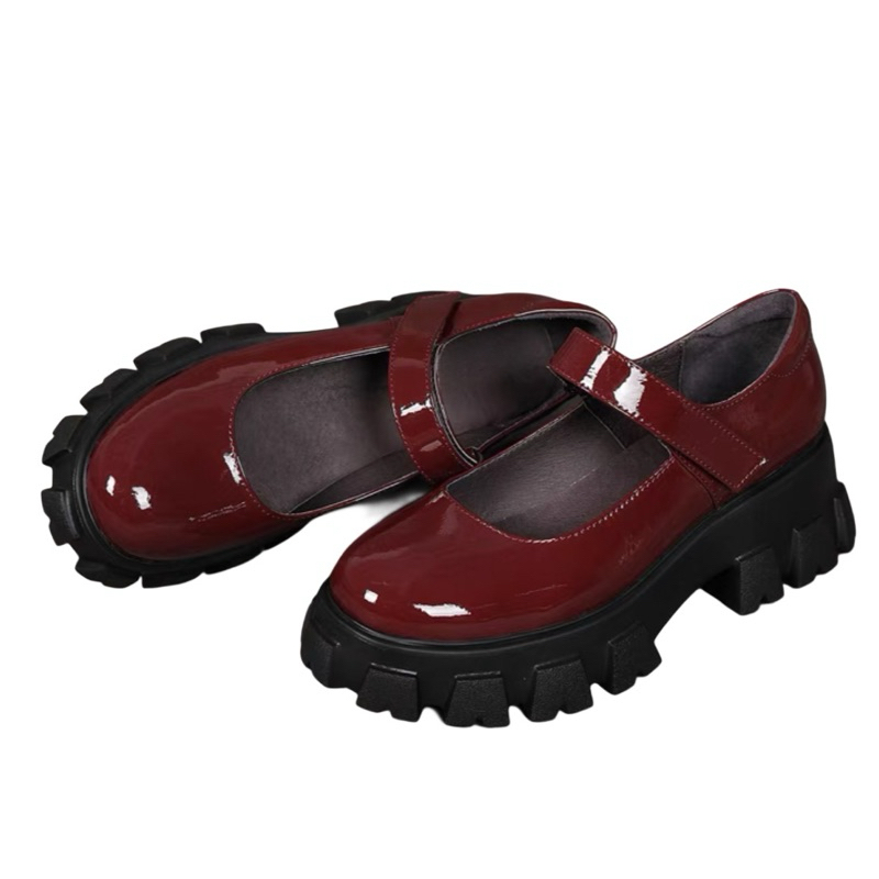 Sepatu Mary Jane Hak Tahu Tinggi Wanita Import Kulit Murah Premium Marun Hitam Sol Karet Strap Docmart Cewek High 5