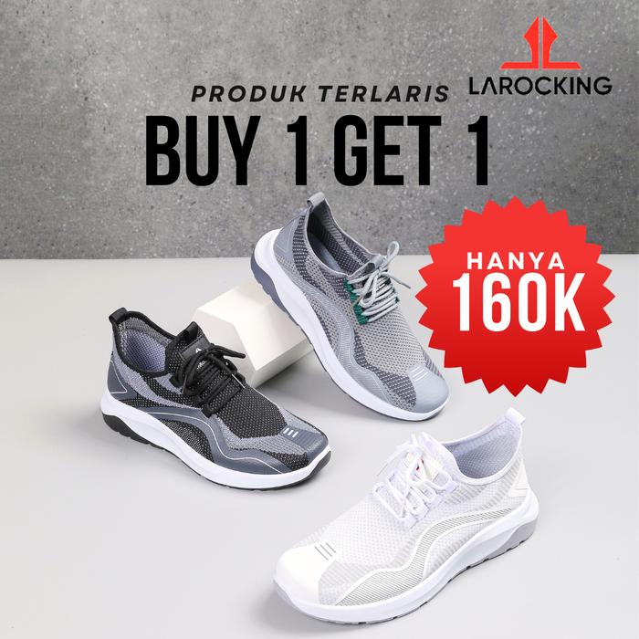 Larocking - Promo [Beli 2 Sepatu Hanya Bayar 1 Sepatu / Buy 1 Get 1] | Sepatu Running Gym Shoes Abu Outdoor Olahraga - T