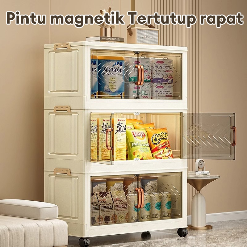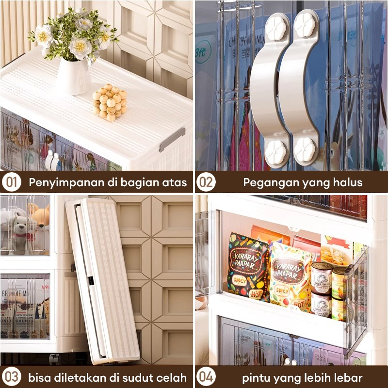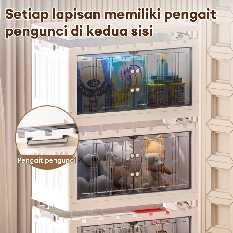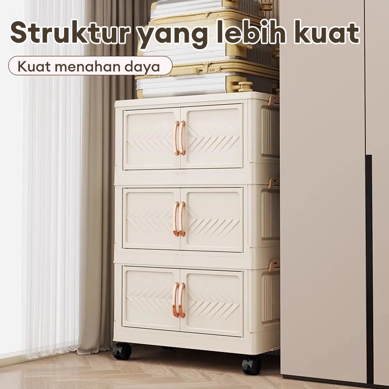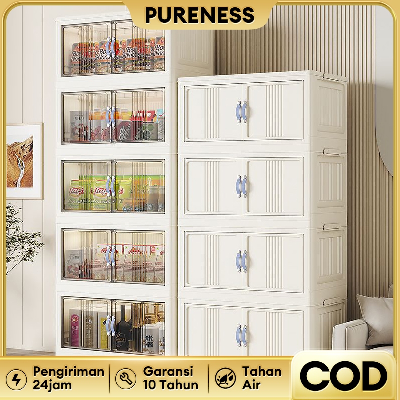 Lemari Pakaian Lemari plastik susun 40/45/50/55/60/65/70/75cm pintu ganda Lemari plastik lipat Kotak Plastik Penyim