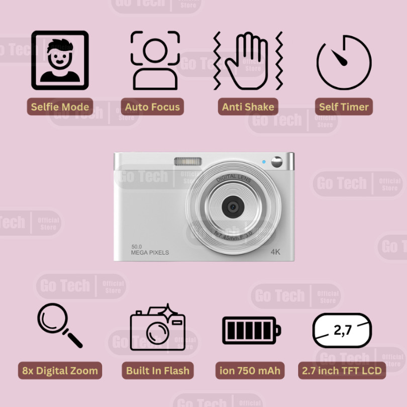 Go Tech - Digital Camera Digicam Kamera Pocket 50MP Kamera Digicam 50MP Shoot Vintage Digital Camera Digicam Resolu