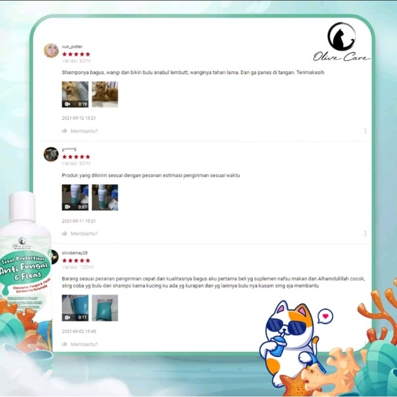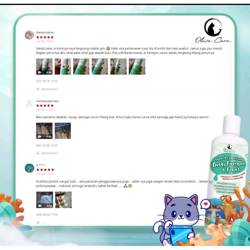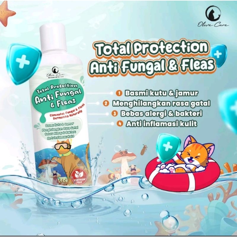 Olive Care Shampoo Kucing Total Protection ANTI FUNGAL & FLEAS Untuk Jamur dan Kutu