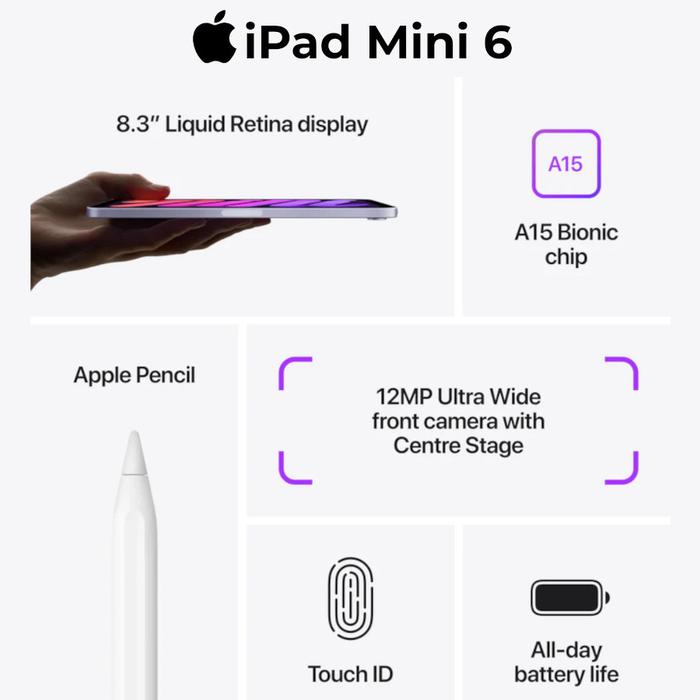 Apple Ipad Mini 7 (A17 Pro) | Mini 6 (A15) Wifi Only 8.3 Inch Garansi Inter Original - Starlight, Mini 6 64Gb New