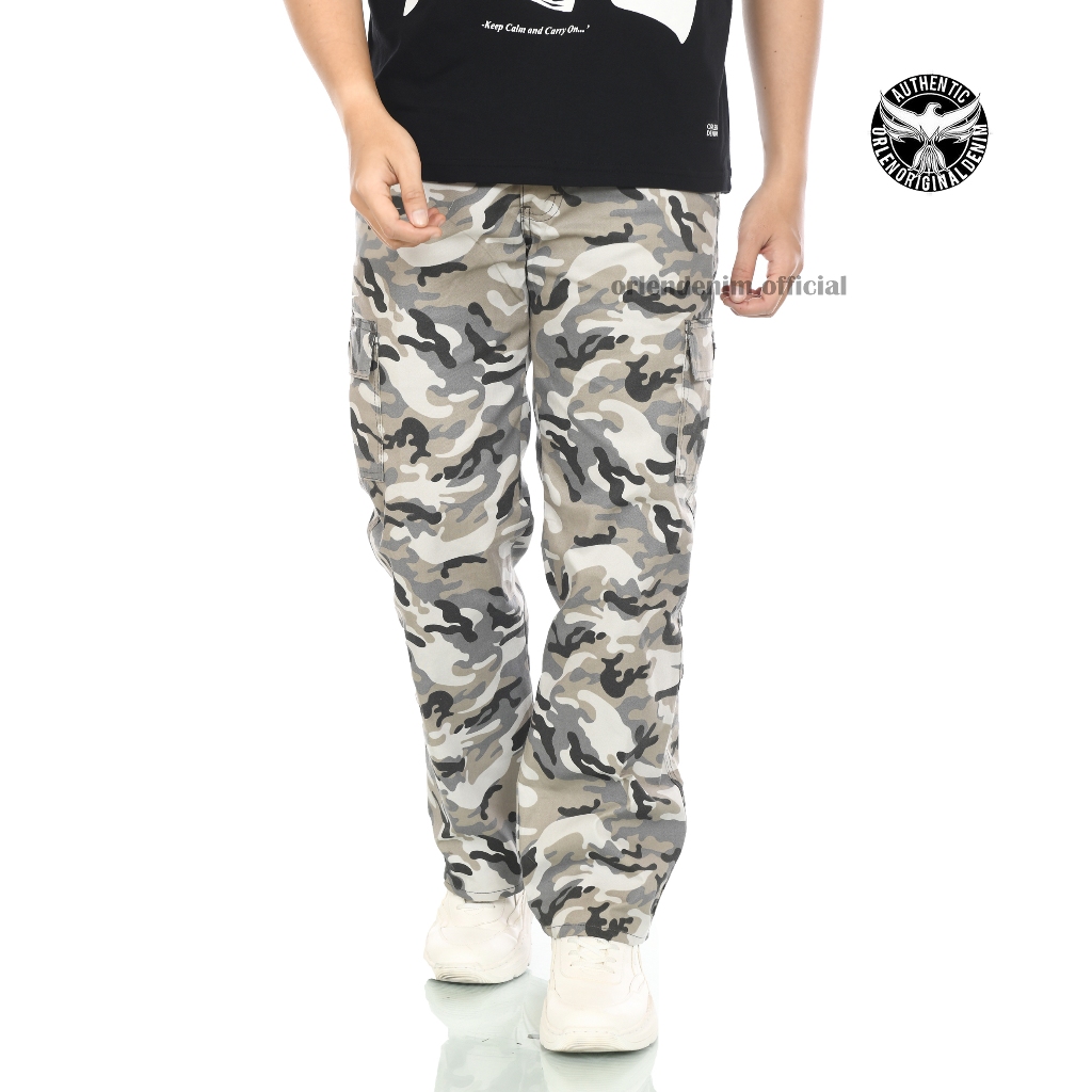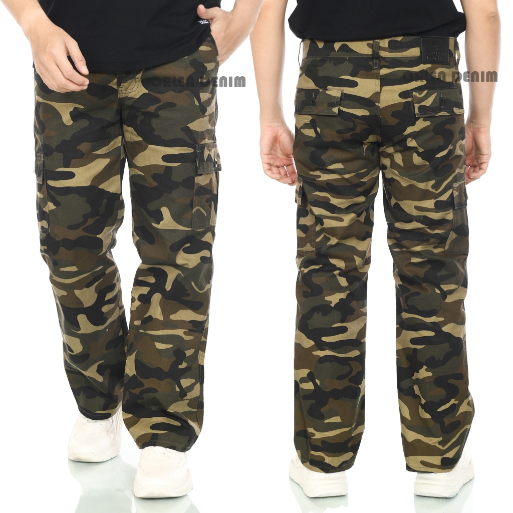 ORLEN DENIM - Celana Loreng Panjang Pria Cargo Camo Reguler Fit Pants Loose fit Gombrong Baggy